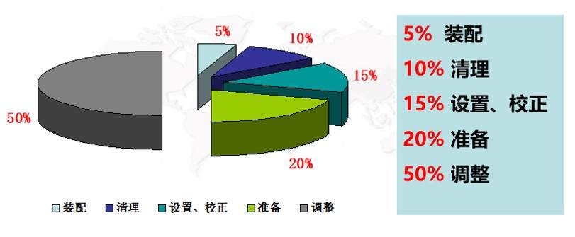 最初使用在汽車制造廠,以達到快速的模具切換(Exchange of Dies);豐田現場人員經過長期探索,將沖壓工序沖床模具裝換調整所需時間,從1945年至1954年的3小時,縮短為1970年以后的3分鐘,現在,豐田汽車公司利用設備快速裝換調整SMED法,所有大中型設備的裝換調整作業均能在10分鐘之內完成。企業產品切換時間由4小時縮短為3分鐘。