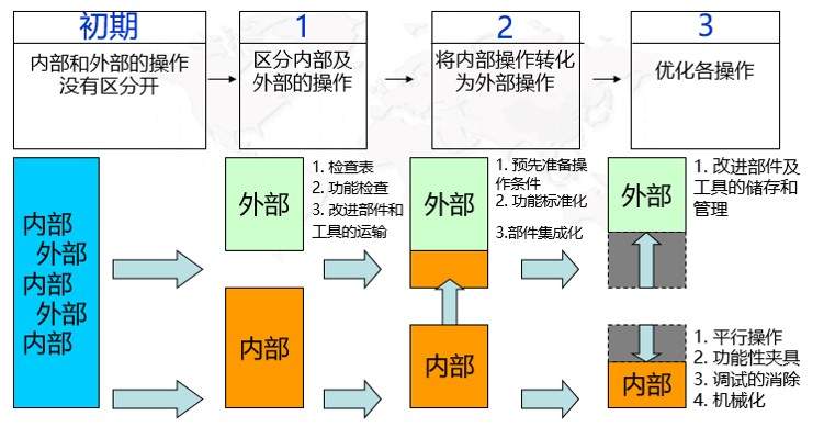 SMED在50年代初期起源于日本;由(新江重夫)在豐田企業發展起來;