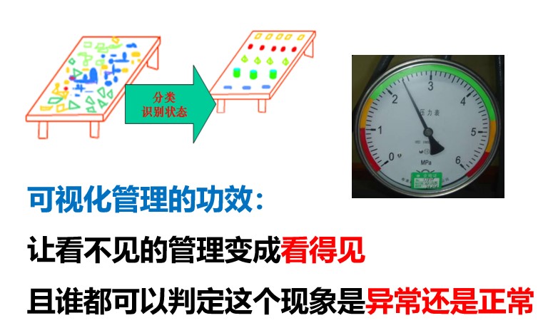 (三)顏色管理(Color Management Method):顏色管理就是運(yùn)用工作者對色彩的分辨能力和特有的聯(lián)想力,將復(fù)雜的管理問題,簡化成不同色彩,區(qū)分不同的程度,以直覺與目視的方法,以呈現(xiàn)問題的本質(zhì)和問題改善的情況,使每一個(gè)人對問題有相同的認(rèn)識(shí)和瞭解。