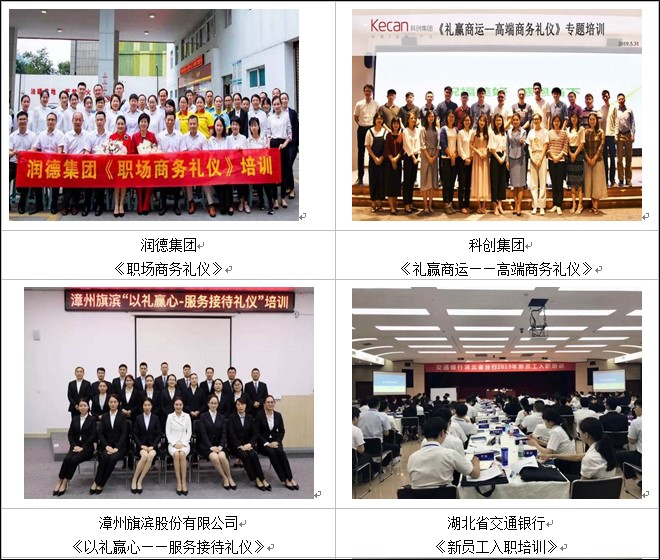 ? 曾為深圳鵬海運公司定制化開發禮儀課程從禮儀的立場、形象禮儀、社交禮儀、服務與溝通禮儀多方位塑造,為公司打造一支精英團隊。