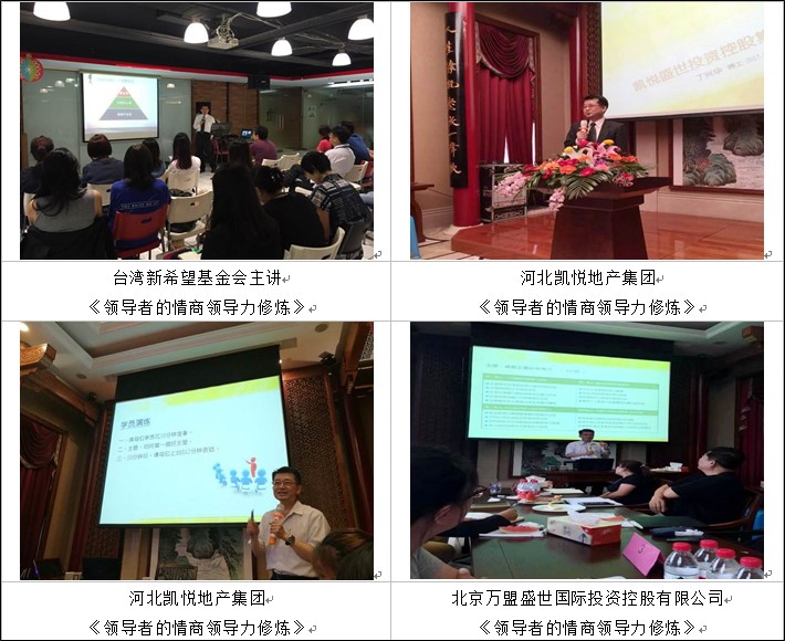 ● 曾受邀新希望基金會(國際及涉外非盈利機構(gòu))進行AQ逆境及營銷管理課程分享,主講《領(lǐng)導(dǎo)者的情商領(lǐng)導(dǎo)力修煉》,返聘5期