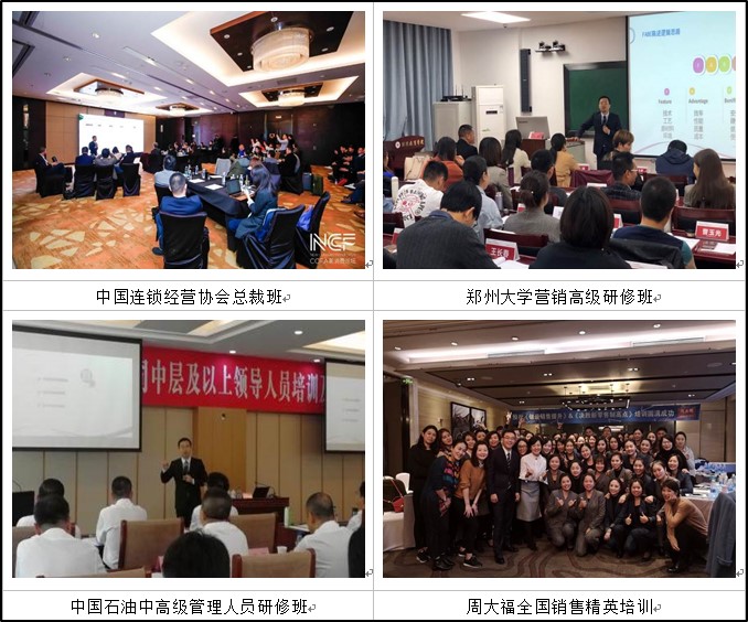 公開課:中國加盟連鎖協會、中國職業經理人協會、珠海金合種子孵化中心、領道咨詢、虹歌咨詢(服裝行業)、新疆暢泰、銀川工商業聯合會、海南中小企業服務中心、鄭州企研商學院等