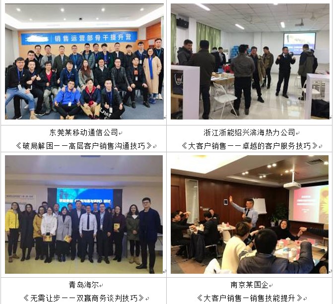 我們公司主要是做電網配電檢測設備和檢測信息化平臺建設的公司,平時針對國電的物資公司和檢測單位,我們的銷售人員年級比較輕,90后比較多,和技術,運維人員交流還好,大家年齡相差不多,也都是交流一些技術、產品上的東西,但是跟部門領導交流的時候,明顯犯怵,見了面也不知道該將什么,說了好像客戶也沒有太大的興趣,這次《高層公關技巧》課程,譚老師通過大量的年輕銷售搞定年長領導的案例,幫助我們的年輕銷售人員樹立了信心,提供了方法,明確了路徑,不僅在課堂上給與了輔導,課后還進行了跟蹤輔導,目前,我感覺,我們的銷售人員在面對高層客戶的時候,確實發生了很大的變化