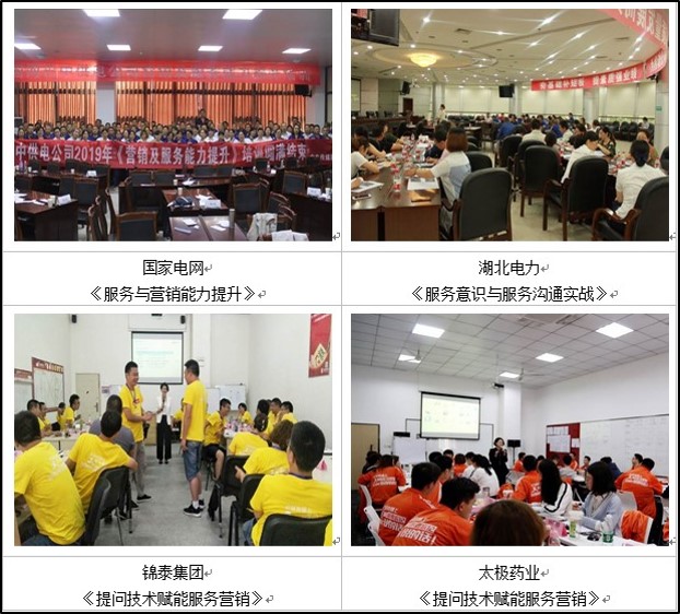 為電網(wǎng)培養(yǎng)近2000位優(yōu)質(zhì)服務人員:多次應邀為國家電網(wǎng)旗下四川電力、河南電力、寧夏電力及南方電網(wǎng)旗下云南電網(wǎng)、貴州電網(wǎng)公司等電力系統(tǒng)進行《電力營銷服務人員技能提升》、《轉(zhuǎn)訴為金—用心服務,溝通降訴》《服務明星—優(yōu)質(zhì)服務提升》等課程培訓,每年授課高達180天,為電網(wǎng)培養(yǎng)近2000位優(yōu)質(zhì)服務人員,客戶滿意度達95%以上。