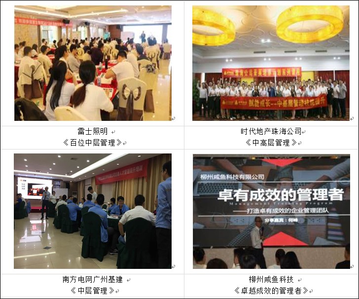 非常高興能夠邀請到何老師為我們公司一百位中層管理上管理技能提升的課程,效果非常不錯,很多多年經驗的老干部,都表示課程對自己的工作幫助非常大,老師講解很生動,課程全程都很投入的聽,非常棒!
