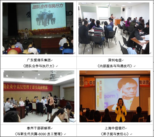 各類企業:大慶集團、河南郵政、新興鑄管、江西新余鋼鐵、中國核二建集團、中航工業沈飛集團、浙江國技互聯信息技術有限公司[溫州百度]、一汽大眾成都分公司、益陽移動、中石化華北油氣分公司、中國電信、廣州電信、珠海郵政、深圳地鐵集團、深圳百康健康、大琢投資、琢子文化、廣東南航、佛山愛得樂集團、順德區大良科技、廣東精藝金屬股份有限公司、光大房地產、中科科技發展、廣東金剛工程、冠捷電子、深圳鵬都興實業、佛山偉仕達電器有限公司、佳隆股份、理丹電器、建華管樁、深圳TCL、廣東嘉晟生物科技、天安數碼城集團、廣東高速通驛集團、華企商學院等。