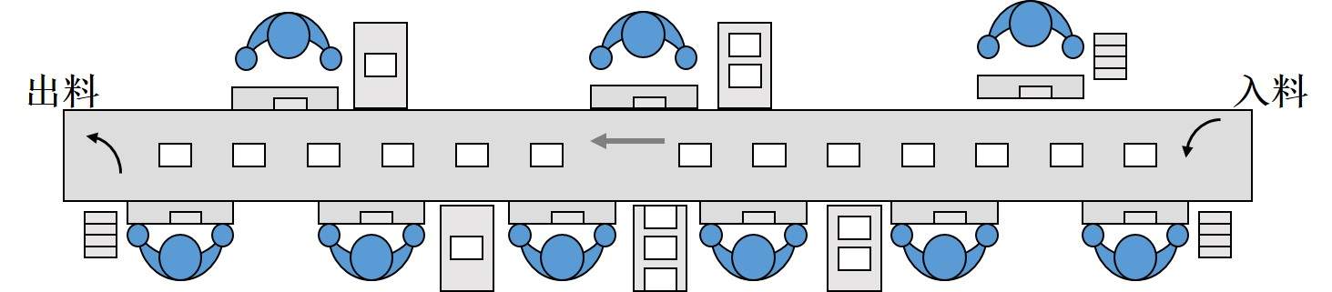 單元化生產布局,是精益生產的一個模塊,是當代最新、最有效的生產線設置方式之一,為日本以及歐美企業所廣泛采用。這種方式使得小批多種生產殘酷環境下的生產線幾乎比流水線效果還好,因此被譽為“看不見的傳送帶”。