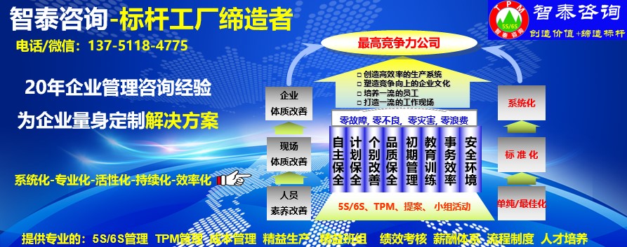 深圳智泰下屬TPM咨詢公司推進(jìn)的TPM管理不僅僅是設(shè)備管理,而是企業(yè)的全面改善,智泰專業(yè)團(tuán)隊(duì)以現(xiàn)場(chǎng)三現(xiàn)為主展開(kāi)企業(yè)的持續(xù)改進(jìn),幫助企業(yè)提升管理水平,促進(jìn)企業(yè)可持續(xù)發(fā)展,最終達(dá)成行