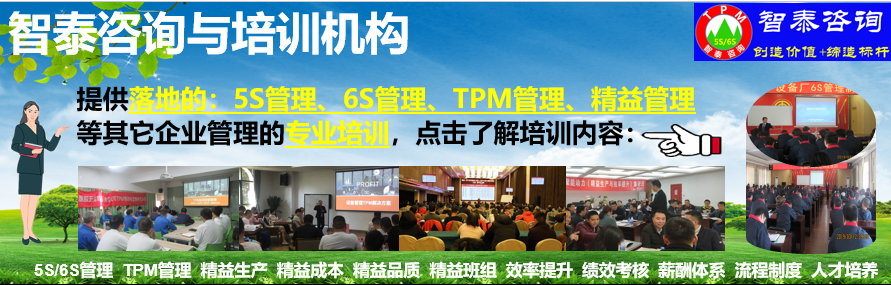 深圳市智泰企業(yè)管理咨詢有限公司又把日本式的TPM管理上升到全員流程管理:T(Total)全員包括生產(chǎn)部門(mén)及管理部門(mén)等在內(nèi)的公司全體人員的全員參加;P(Process):流程包括生產(chǎn)、財(cái)務(wù)、計(jì)劃、采購(gòu)